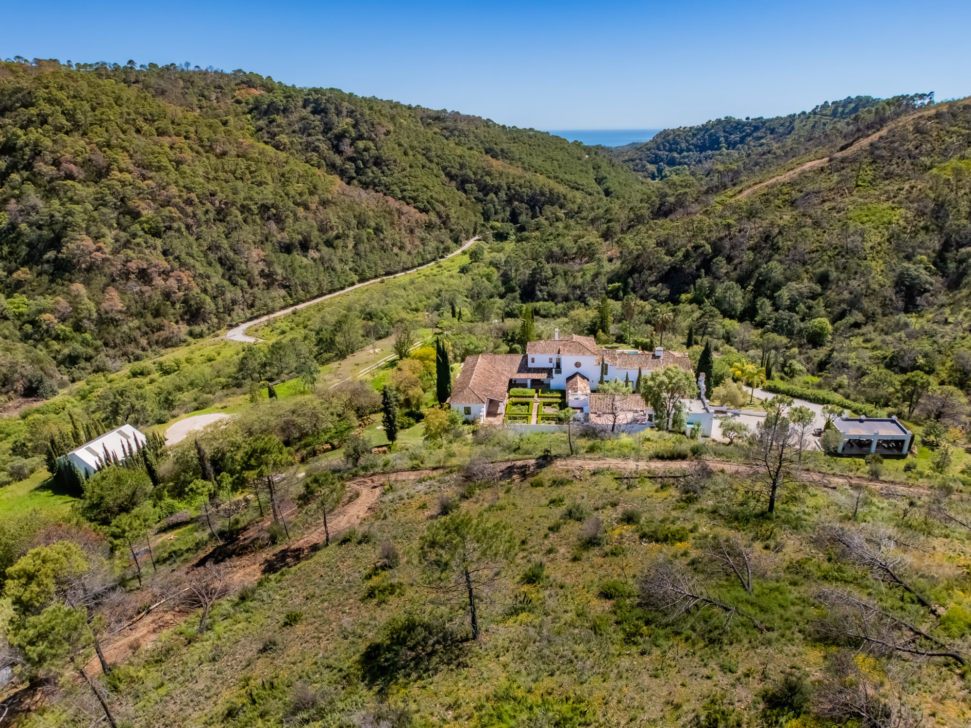 Nestled between Estepona and Marbella, this exceptional Spanish country estate offers unrivaled privacy, space, and luxury, set on an impressive 60 hectares of lush countryside with panoramic views of the Sierra Bermeja mountains and glimpses of the sea.