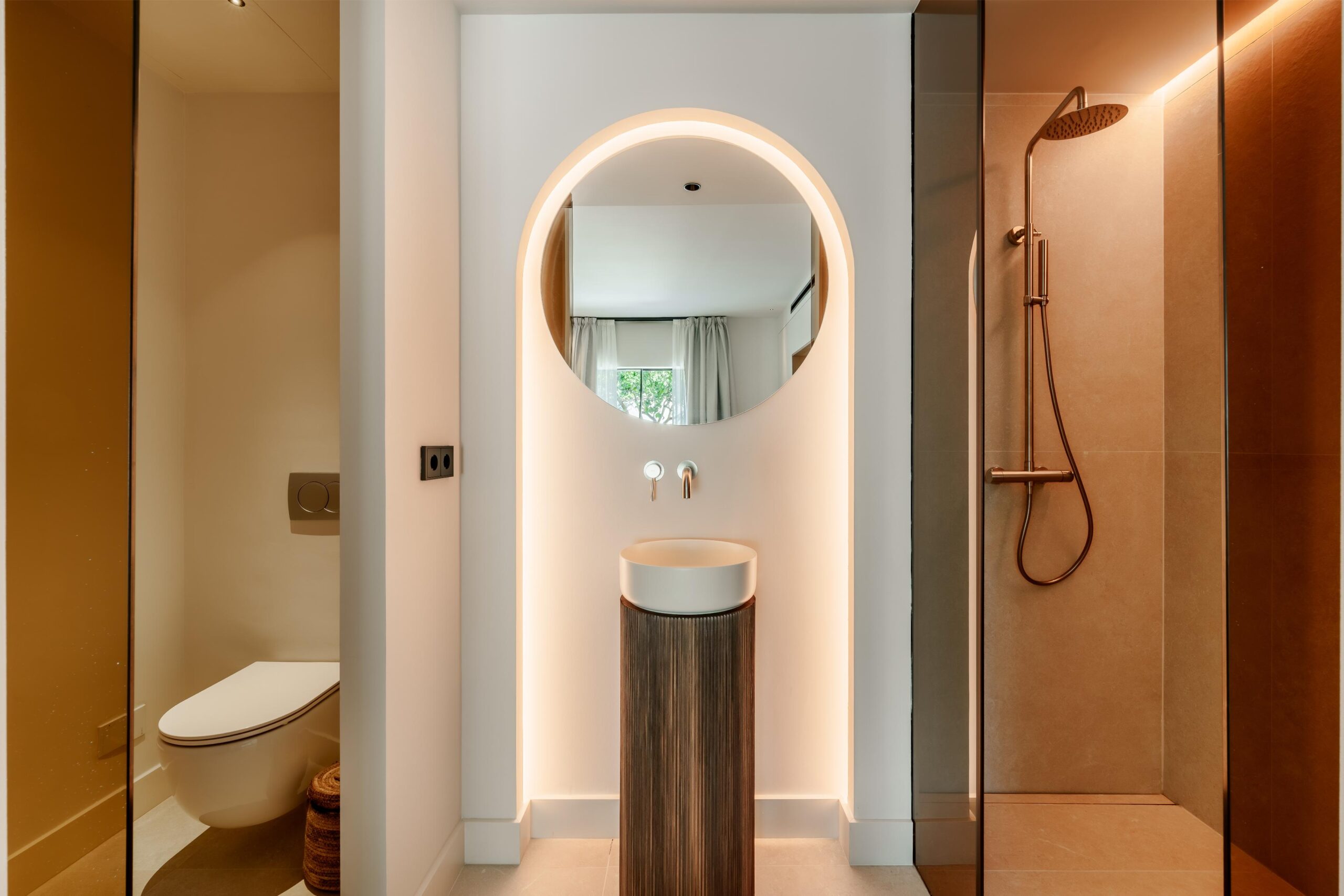 Welcome to Villa Keeya, a serene modern haven nestled in the heart of Cortijo Blanco, one of Marbella’s most desirable coastal neighborhoods. Just a short walk from golden beaches and minutes from Puerto Banús, this architectural gem blends Scandinavian minimalism with Japanese-inspired tranquility, known as Japandi design—delivering a harmonious living space where simplicity meets sophistication.