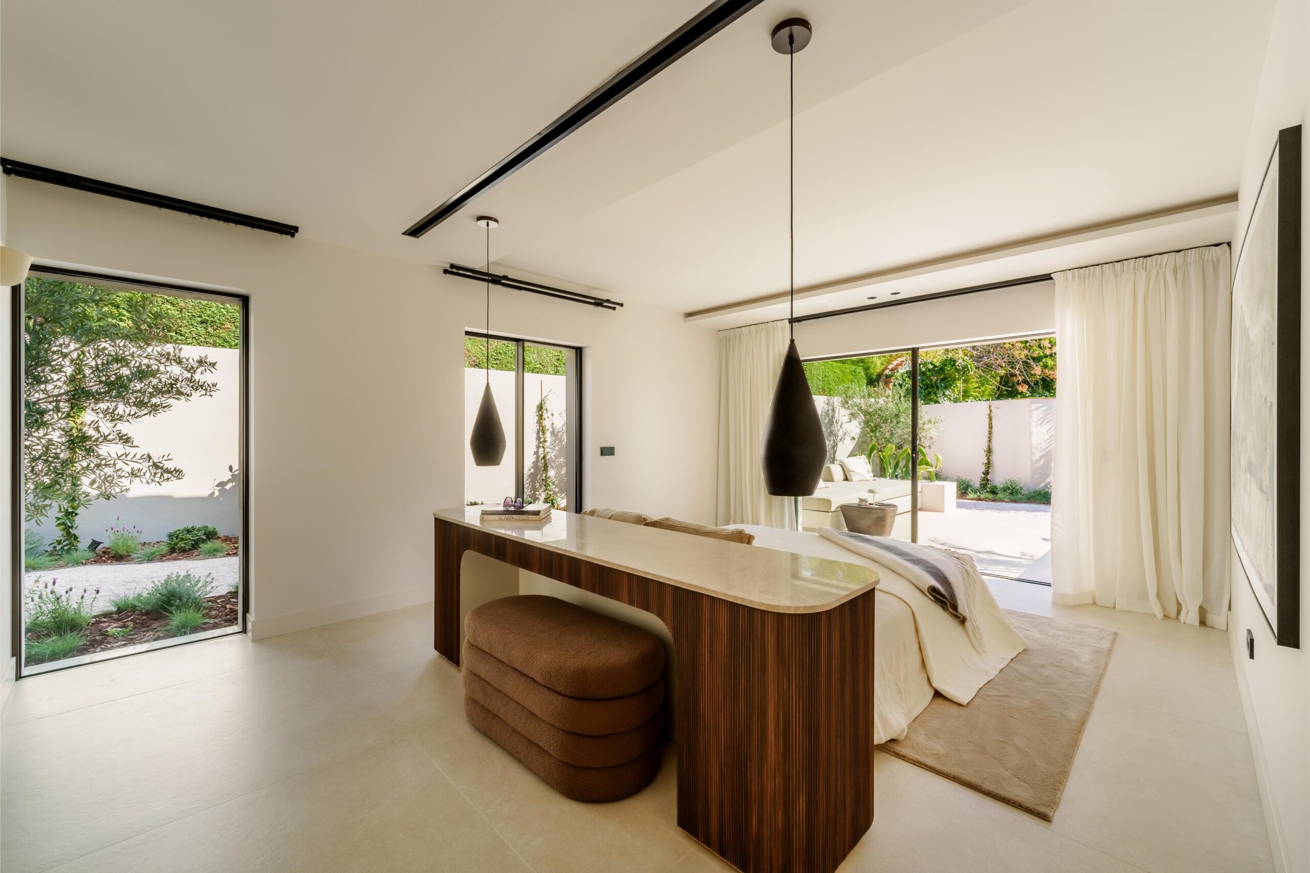 This beautifully appointed villa sits on a 1,050 m² plot and offers 350 m² of sun-filled living space, designed with open-plan flow and natural elegance. The interiors connect seamlessly to the outdoors, showcasing tranquil garden views, a private swimming pool, and a Mediterranean-inspired landscape—ideal for relaxing or entertaining in true Marbella style.