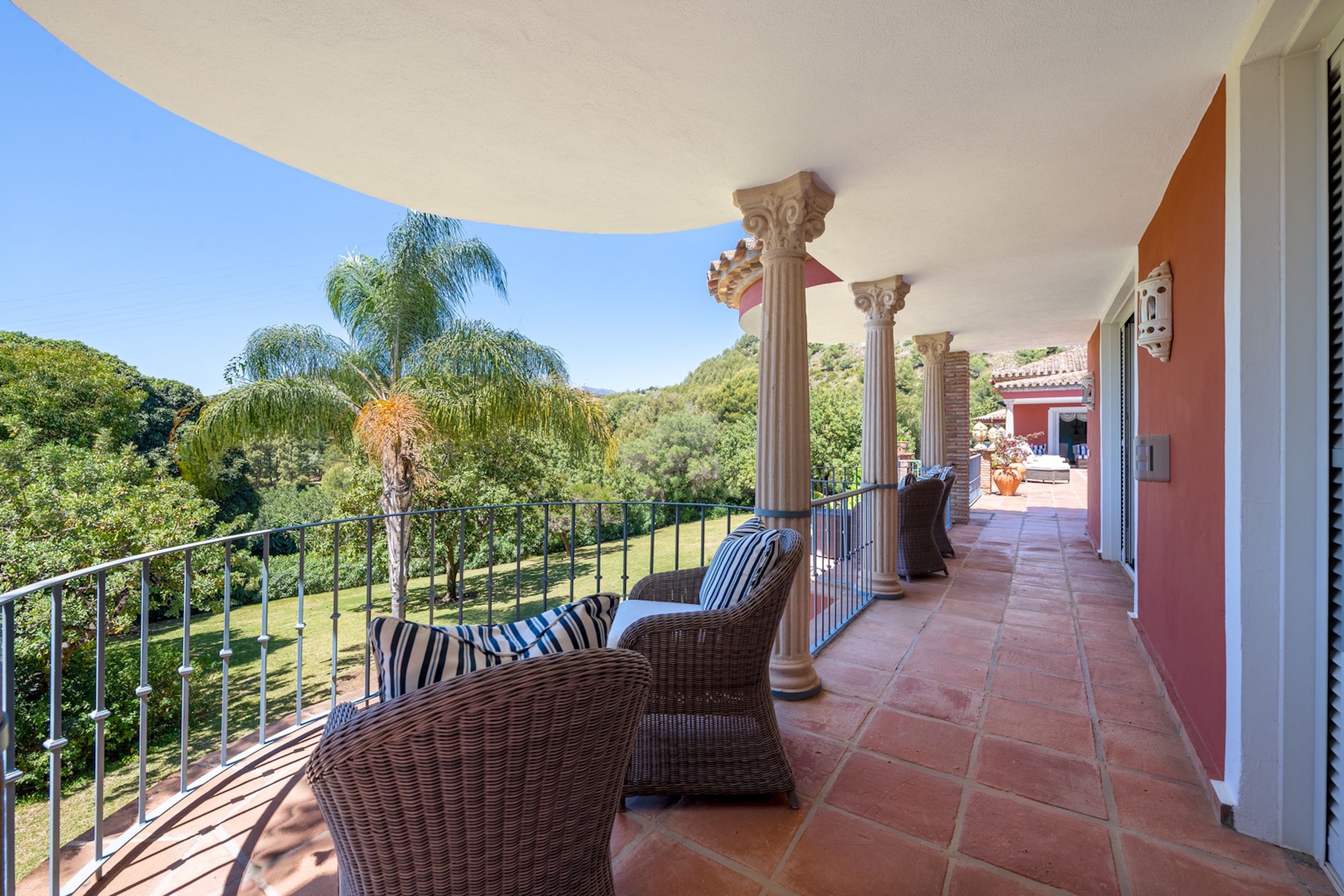 Nestled in one of Marbella’s most exclusive gated enclaves, this grand estate in Los Picos on the Golden Mile presents a rare blend of refined Andalusian charm, impeccable craftsmanship, and exceptional investment potential. With views toward La Concha mountain and glimpses of the Mediterranean Sea, this property is set on expansive grounds and currently classified as rustic land—with approval for future urban development already in place.